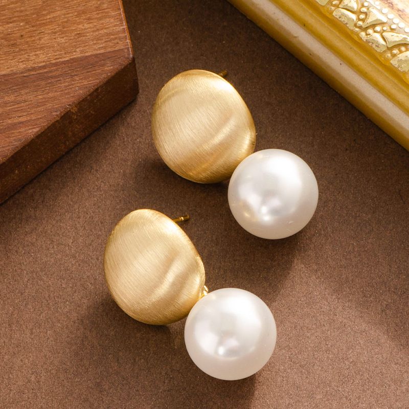 French style light luxury fashionable brushed matte pearl pendant earrings for women with a sense of luxury, simple and genuine gold color preservation silver needle earrings
