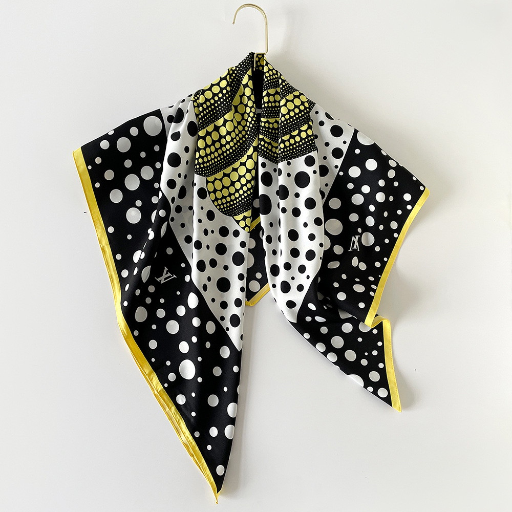 Polka Dot Design: The scarf features a charming polka dot design, adding a touch of elegance and femininity to any outfit.
