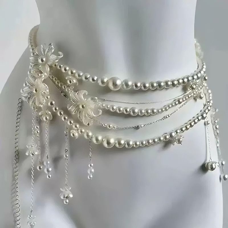Light Sexy Tassel Flower Pearl Multi-layer Waist Chain Fashion High-end Personality Niche Temperament Matching Waist Accessories for Women