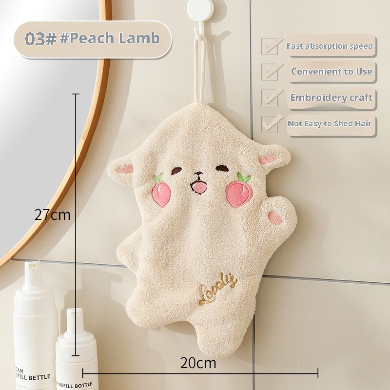 Material:Coral fleece,Item Number:ALCSJ22,Custom Processing:yes,Gram weight:30g included - 50g not included,Brand:Water Lily,Yarn Gauge:10 sticks,Craftsmanship:Embroidery,Color:01#-Strawberry Bunny,02#-Persimmon Bear,03#-Peachy Little Lamb, 04#-Apple Fox,Specifications Length*Width cm:Double-layer Hand Towel,Towels and Washcloths Subdivision:Hand towel