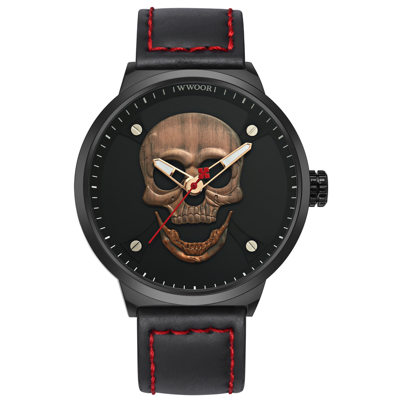 Love WWOOR Grip 8867 Wasserdicht Quarz Totenkopf Mode Gürtel Herrenuhr
