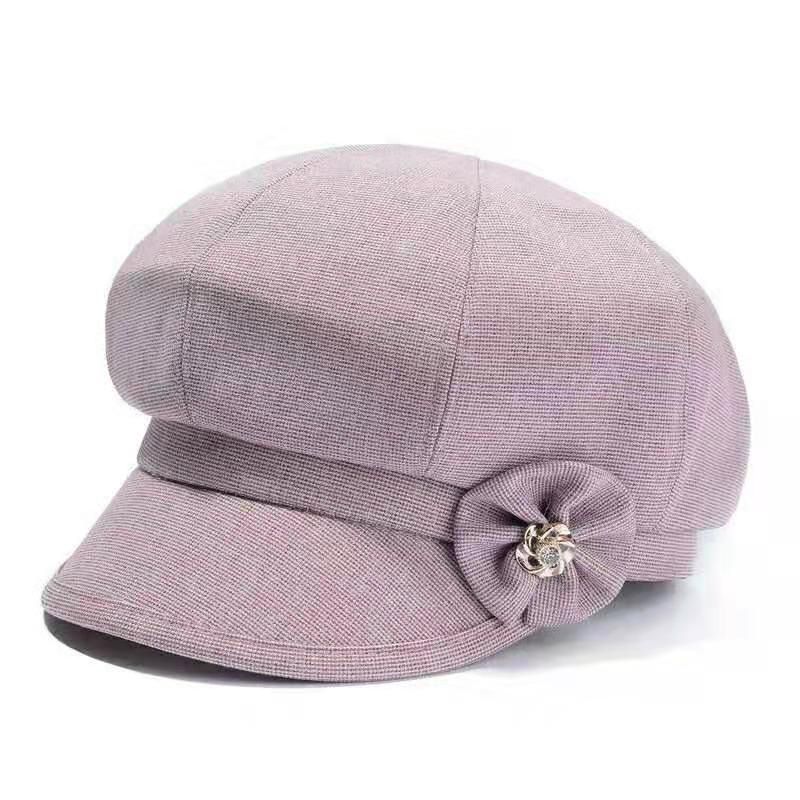 Elderly Women's Beret Hat Spring and Autumn Casual Mom Grandma Octagonal Hat Round Top Flat Brim Women's Mother-in-law Hat