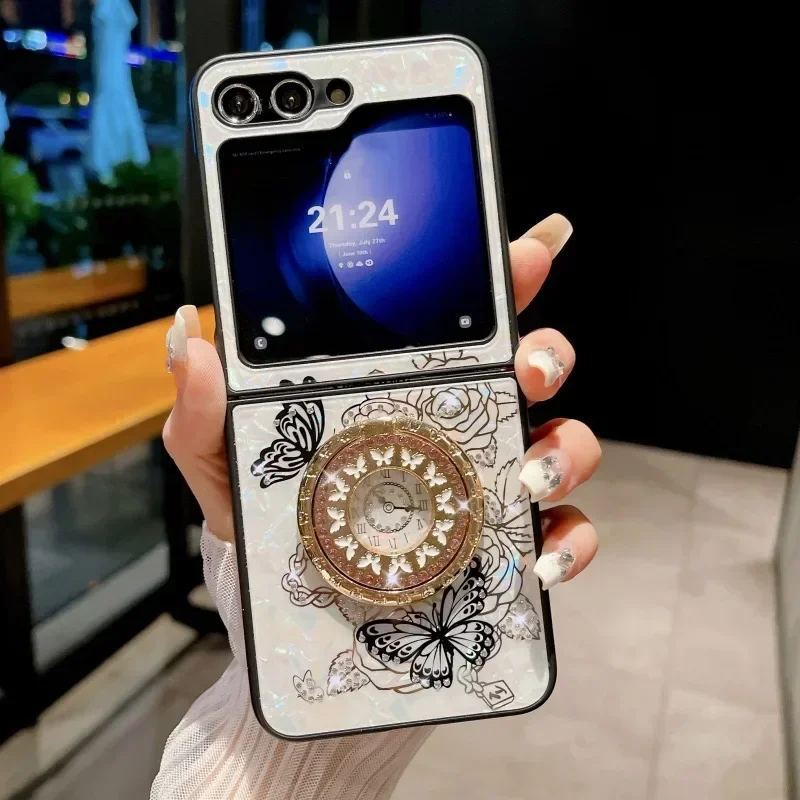 Luxus-Design Schmetterling Glitzer Metallring Hülle für Samsung Galaxy Z Flip 6 5 4 3 Flip6 Flip5 4 3 5G Frau Ring Stand Back Cover