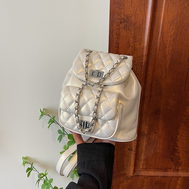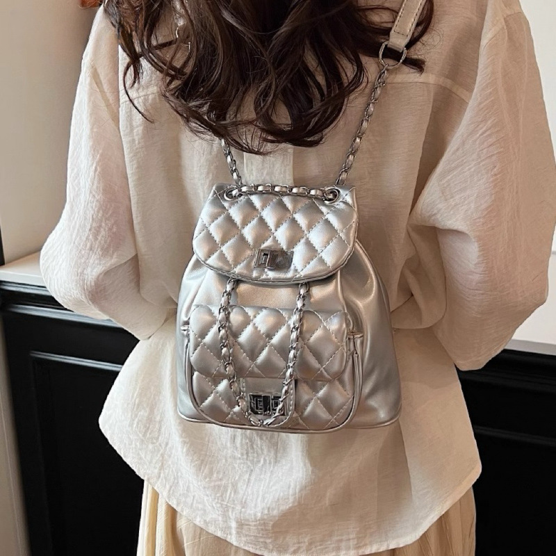 Luxus Silber frauen 2025 Herbst/Winter Neue Gesteppte Kette Kleine Rucksack College Student Tasche Modische Und Vielseitig