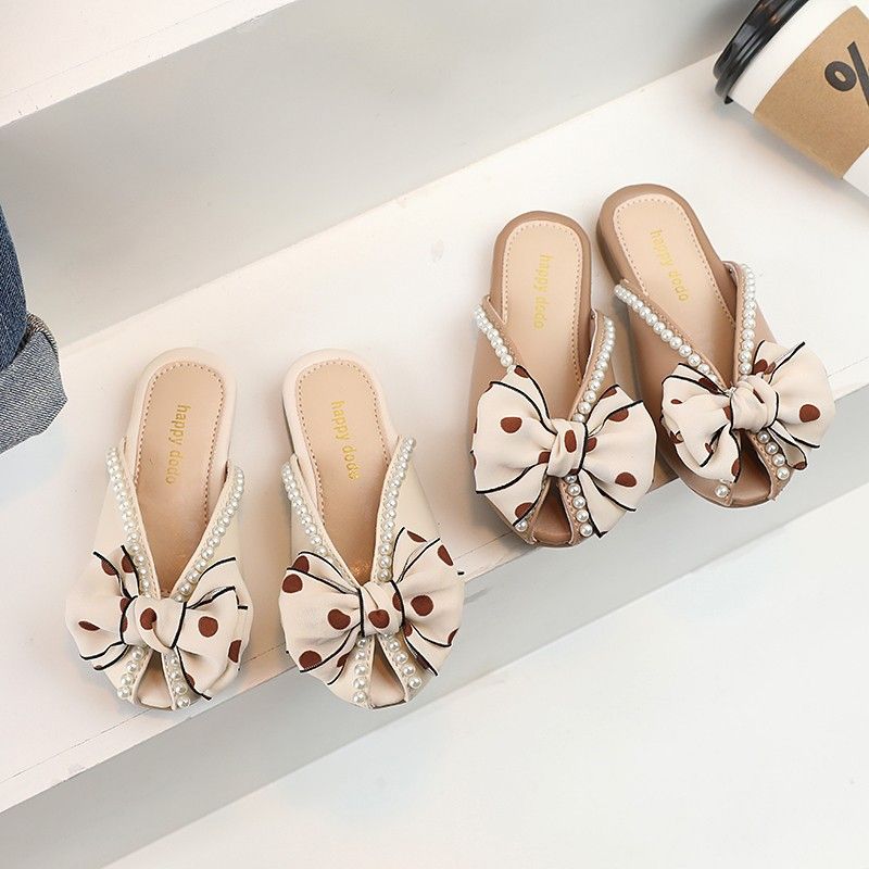 Mädchen Closed-Toe 2023 Sommer Neue Perle Bogen Prinzessin Schuhe Koreanischen Stil Große Kinder Fisch Mund One-Strap Hausschuhe