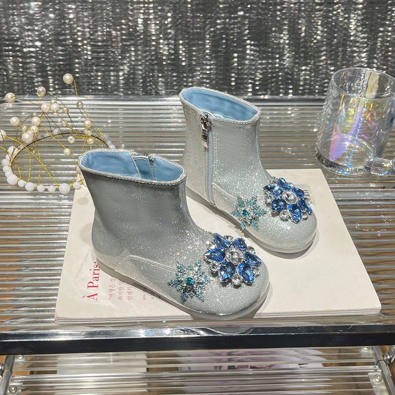 Girls' Short Boots 2025 Autumn Winter New Fashionable Children's Rhinestone Princess Boots with Fleece Lining Warm Single Boots for Little Girls Leather Boots