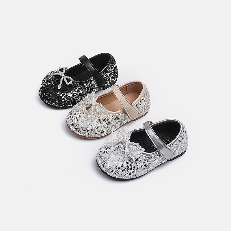 Mädchen Leder mit Perlenschleife Prinzessin Mädchen Glänzendes Kleid zum ersten Geburtstag Passend für 1-Jährige 3 Baby-Lauflernschuhe 4