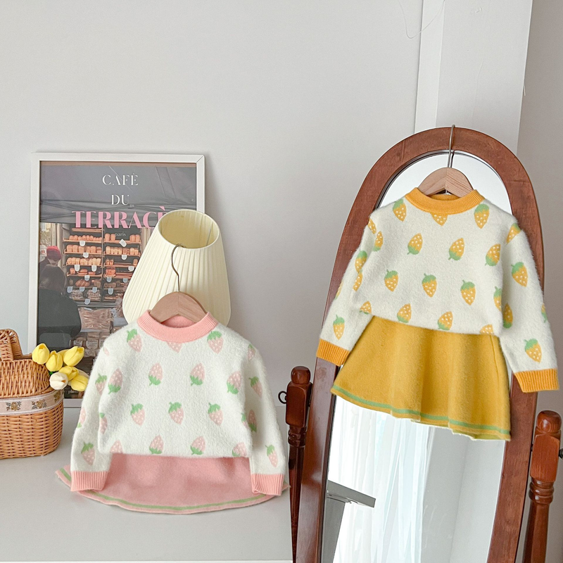 Girl's sweater dress, strawberry knit two-piece dress, baby girl autumn and winter new cute mink fluffy dress