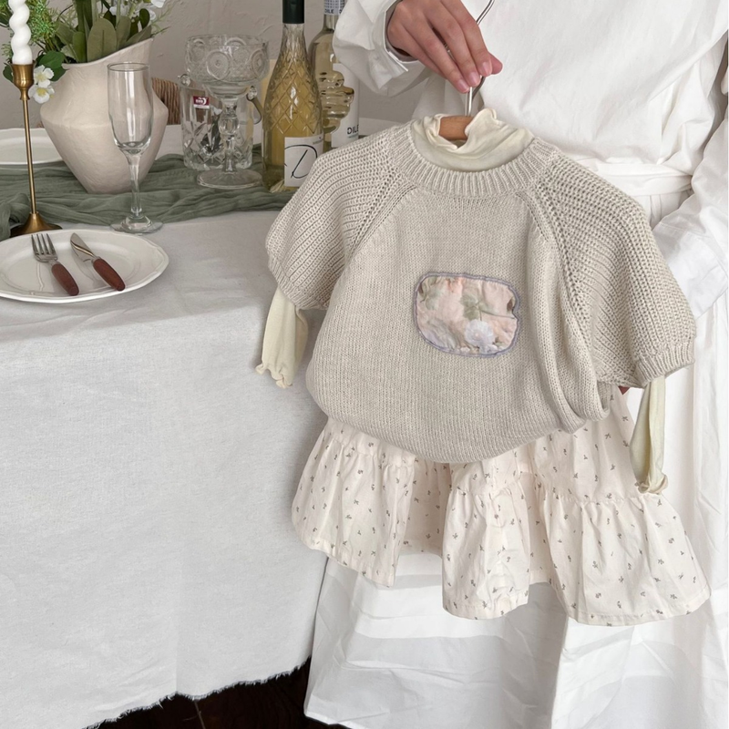 Girls' Set 2024 Spring New Flower Knitted Sweater Korean Edition Children's Fashionable Fragmented Flower Half skirt two-piece set