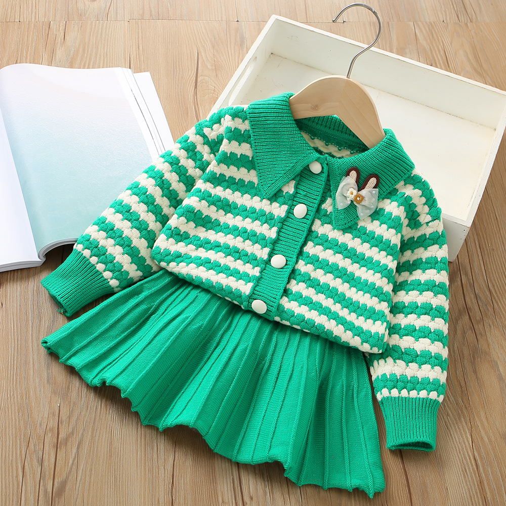 Mädchenpullover 2023 neue Herbst-/Winter-Kinderjacke Strickoberteil kurzer Prinzessinnenrock zweiteiliges Set