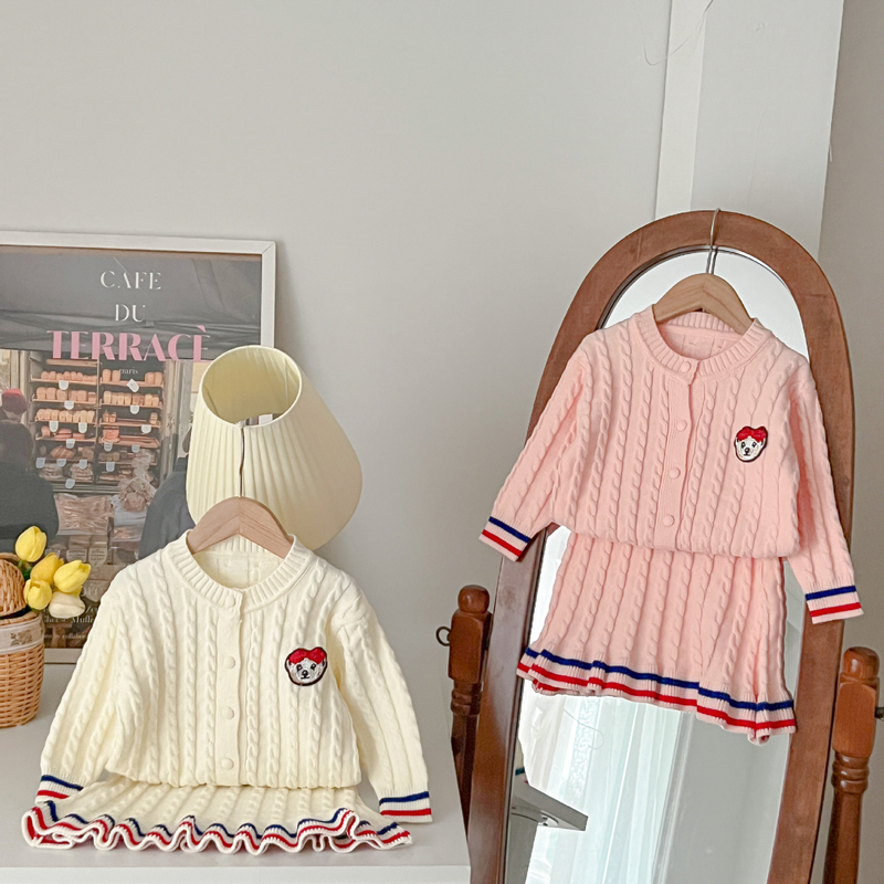 Girls' sweater skirt little Fried Dough Twists learning style knitting skirt girls' autumn and winter new cardigan long sleeve sweater skirt