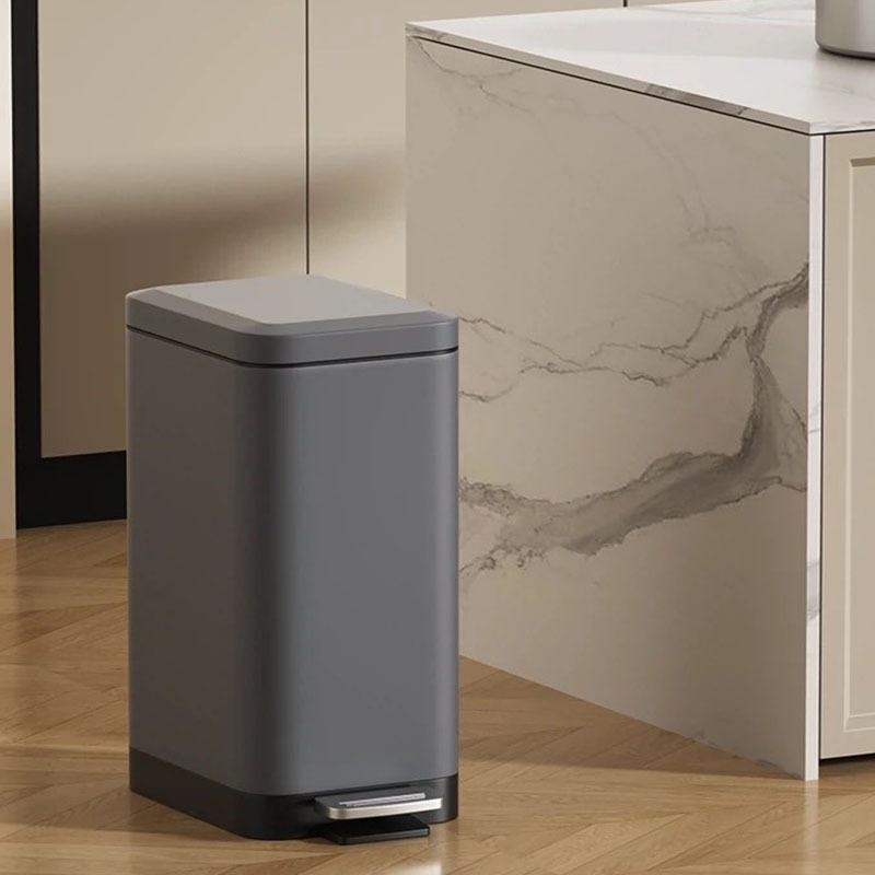 Mülleimer mit Fußpedal – Leiser Tritteimer aus Edelstahl für Küche und Bad, matte und metallische Farben (Weiß, Schwarz, Gun Grey)