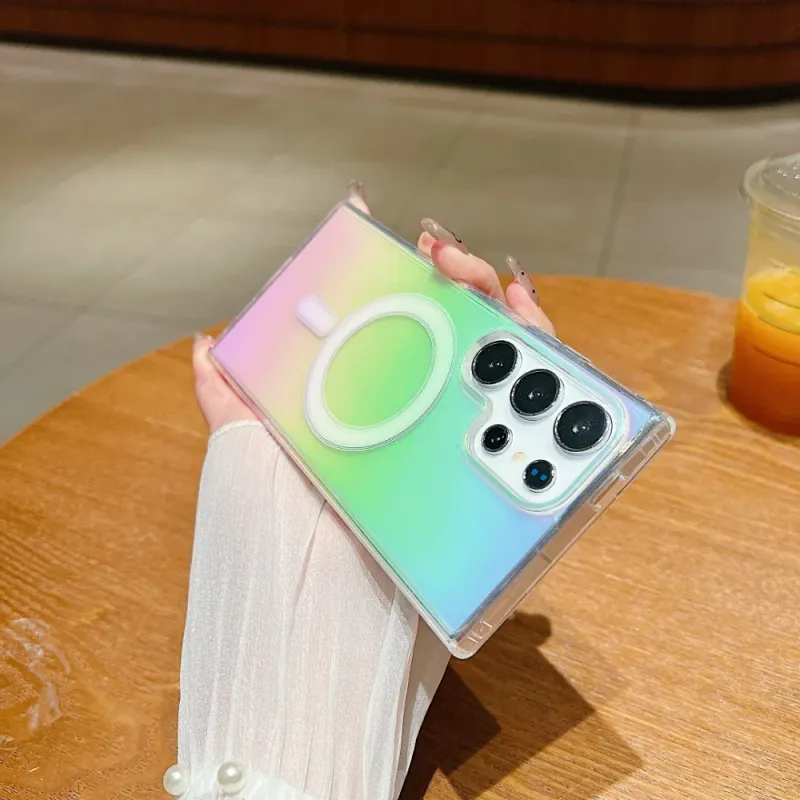 Magnetische Magsafe Wireless-Ladehülle in allmählicher Farbe für Samsung Galaxy S24 Ultra S23 FE S22 S21 Plus A15 A35 A55 Klare Abdeckung
