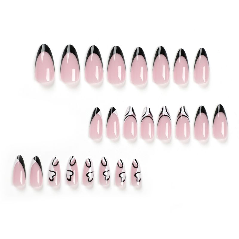 Maniküre im französischen Stil mit mandelförmigen Pflastern, fertige tragbare Nagelpflaster