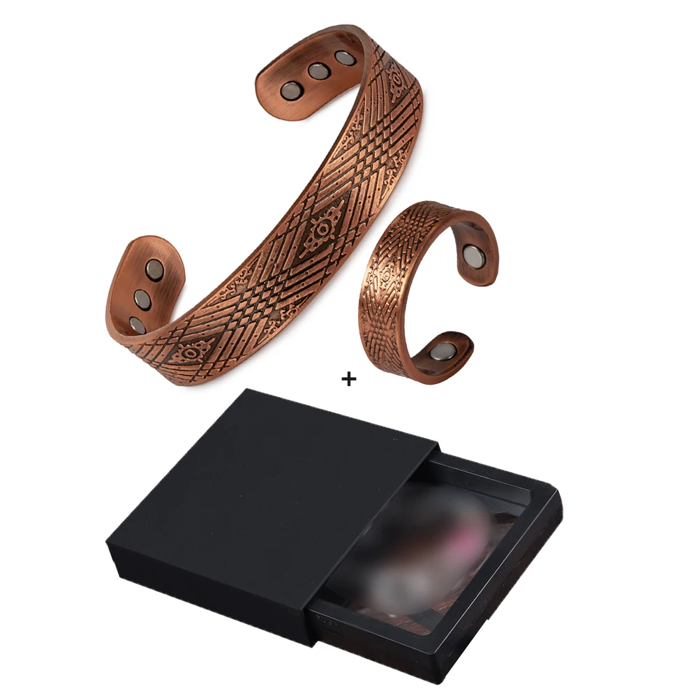 Meathly Magnetisches Schmuckset aus reinem Kupfer, Vintage, verstellbarer Armbandring für Männer, größenverstellbar, Gesundheits- und Arthritis-Schmuckset für Frauen und Männer