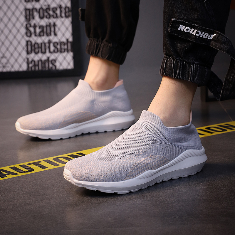 Lightweight Spring/Summer New Men's Outdoor Sports Casual Shoes Korean Edition Socks Shoes Fashion Flying Weave Men's Shoes Breathable Shoes Black