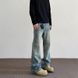 Herrenbekleidung High Street Cleanfit Katzenschnurrhaarmuster Distressed Jeans Gerade ausgestellte Vibe Lange Hose