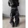 Herrenbekleidung Nische gewaschene Jeans mit Blitzmuster und Stickereien für Männer und Frauen High Street Hip Hop lockere gerade Freizeithose