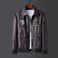 Bestickte Kunstlederjacke für Herren – Übergroße Streetwear-Bomberjacke mit Fleecefutter (M-9XL, Polypropylen-Futter)