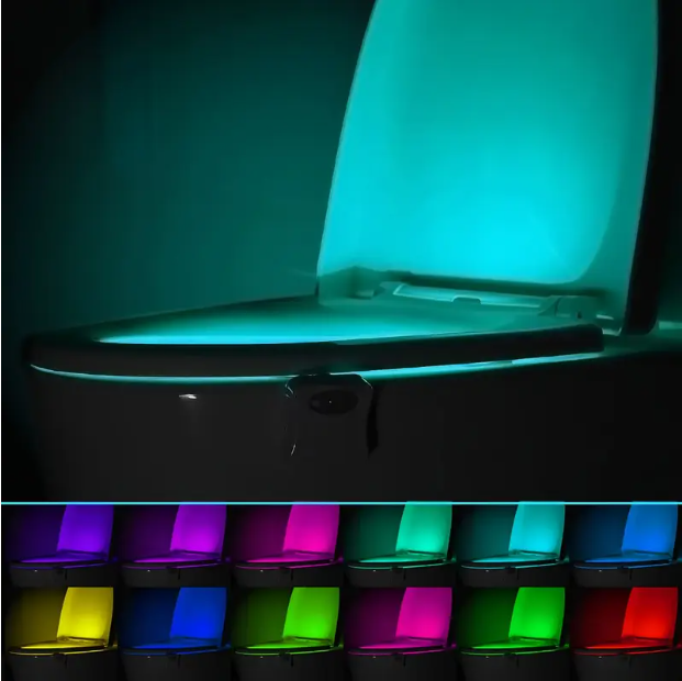 Menschliche Infrarot-Erkennung, automatisches Toiletten-Nachtlicht mit Bewegungssensor, 16 Farben, Waschraum-Toilettensitzlicht, batteriebetriebene wasserdichte Badezimmerlampe