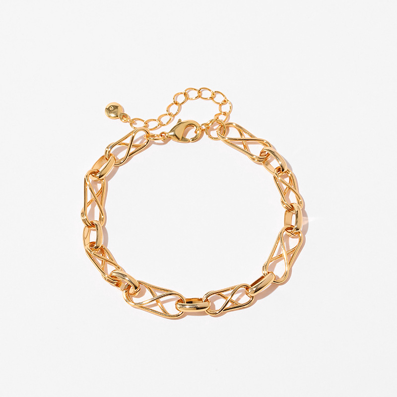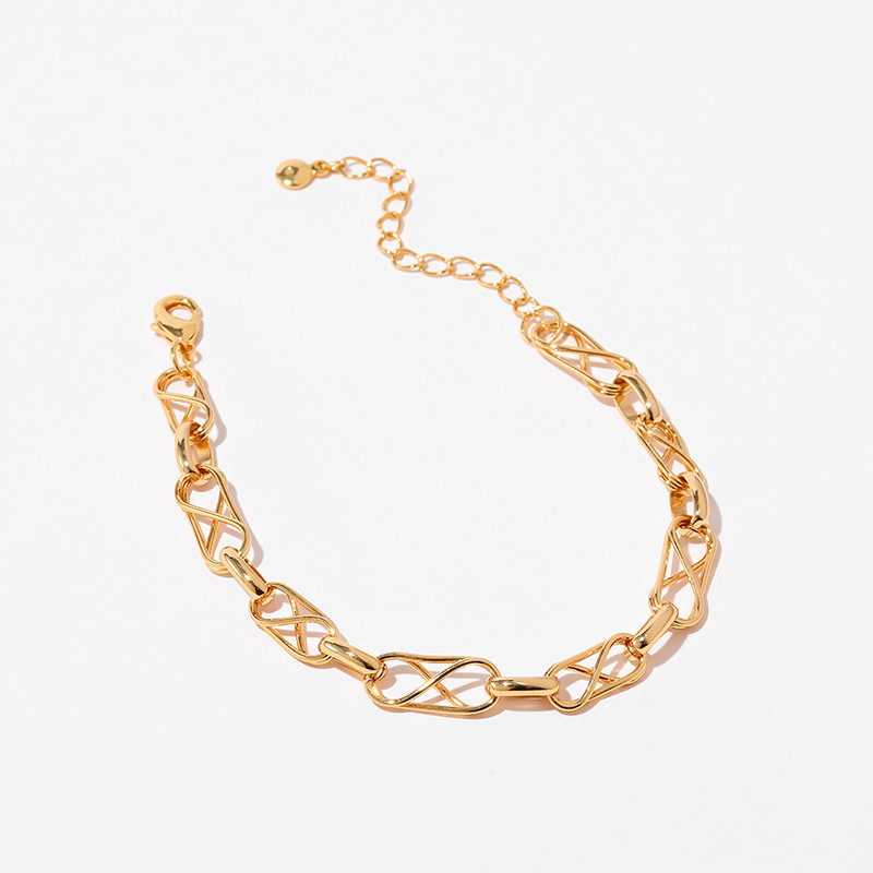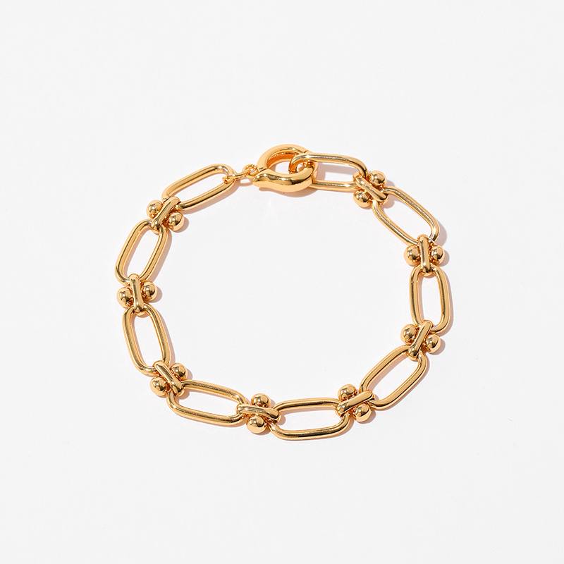 Messing überzogenes Echtgold-Persönlichkeitsarmband, handgefertigt, dicke Kette, neutraler Stil, INS-Mode, Retro-Feeling, Handschmuck