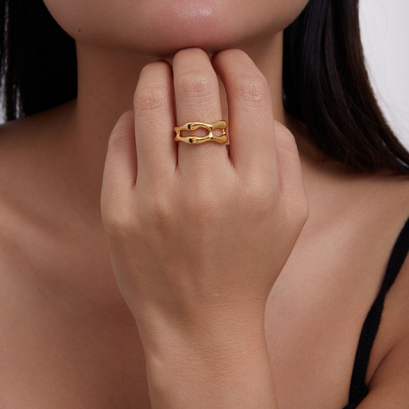 Brass Gold-Plated High Color Retention Minimalist Geometric Line Ring for Women Ins Style Adjustable Open Finger Ring
