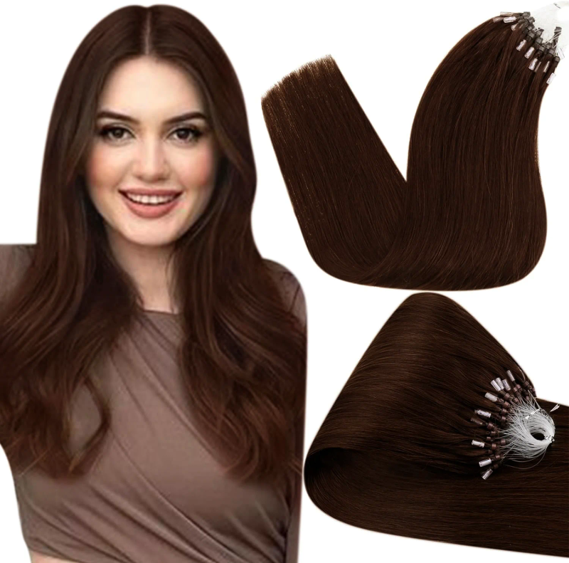 Micro Loop Haarverlängerung, Micro Ring Loop Haarteil, Perlen, Kaltfusion, Stick Tipped Hair, Fish Line, natürliches glattes Echthaar