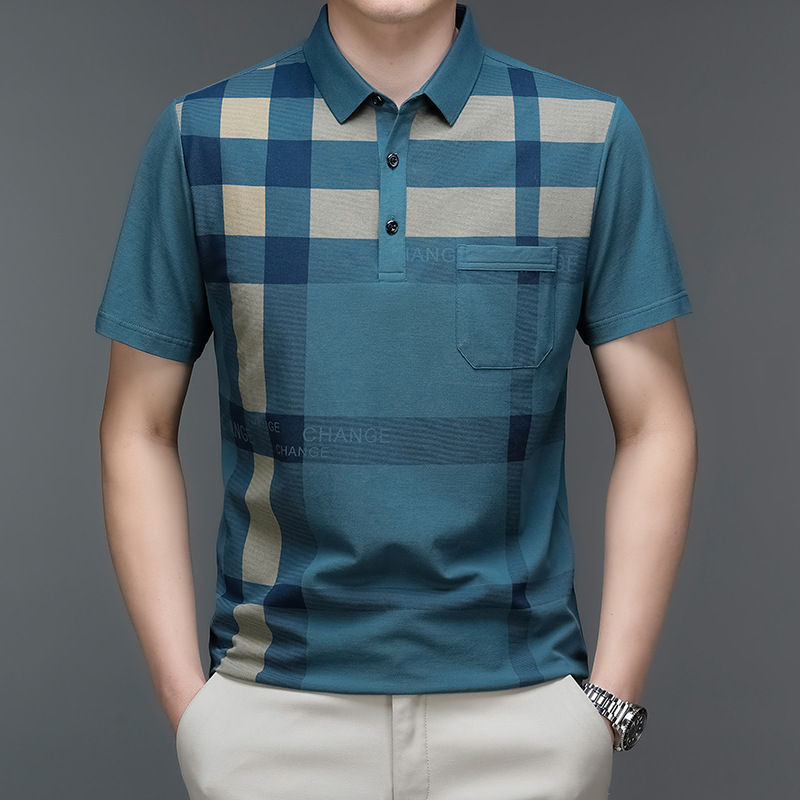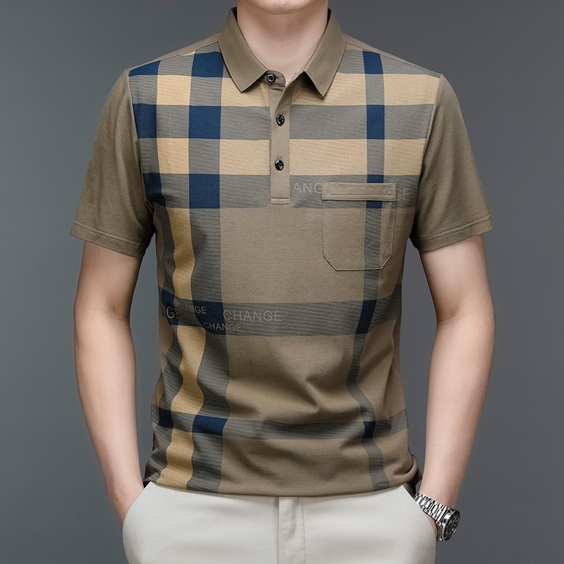 Mingdi Mouse 2024 Sommer Neues Polo-Kragen-Kurzarm-T-Shirt mit Taschendruck aus reiner Baumwolle für Herren