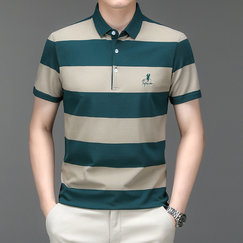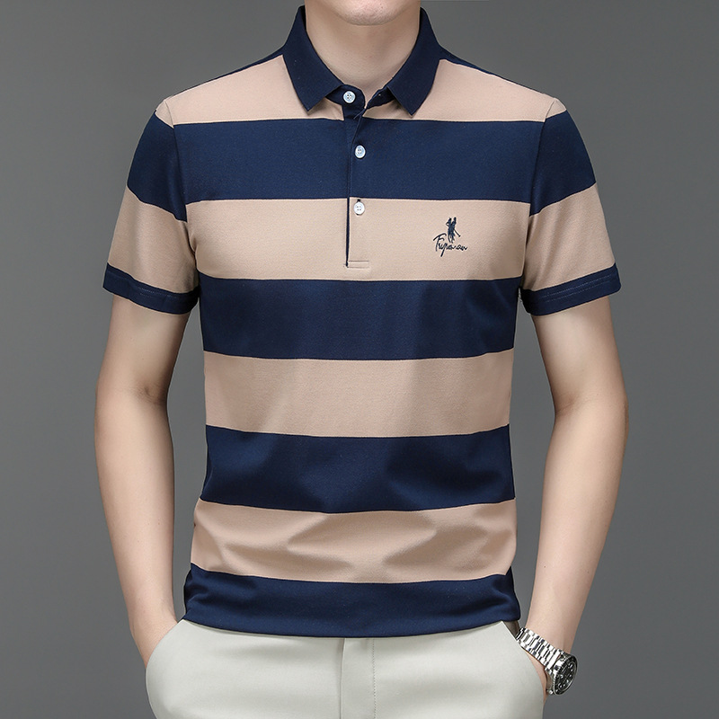 Mingdi Mouse Men's 2024 Summer New Striped Short sleeved T-shirt Business Polo Collar Pure Cotton Large Men's Polo Shirt