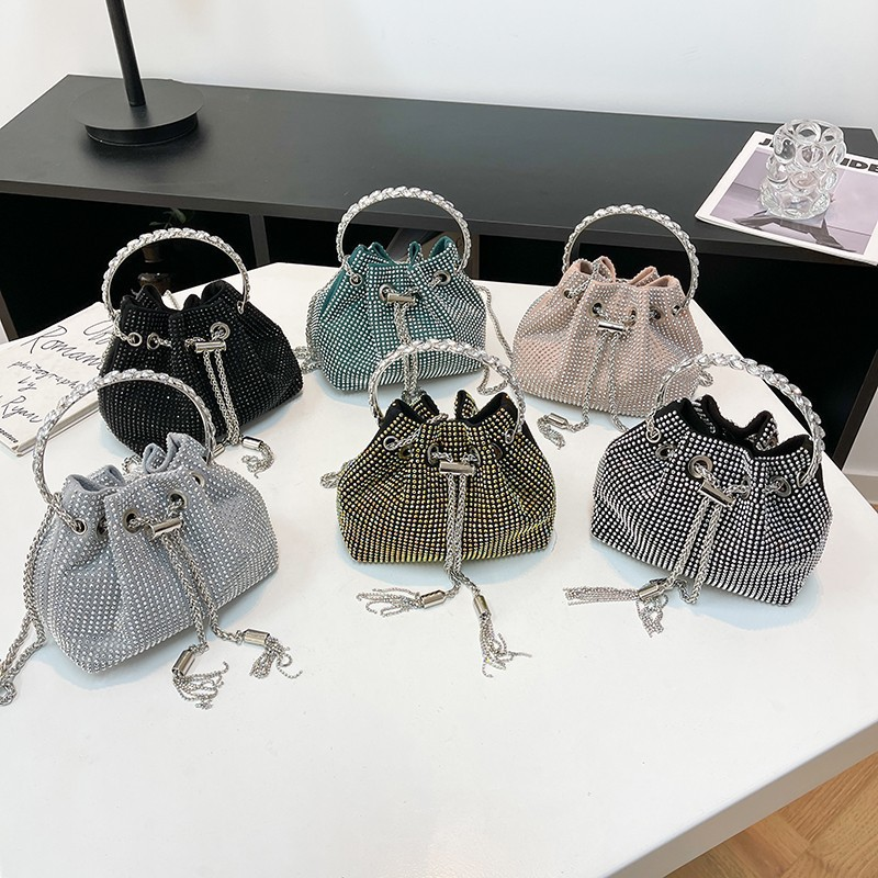 Minimalist Design Mini Bucket Bag Popular Bright Diamond Bag Women's 2023 Versatile New Chain Crossbody Bag