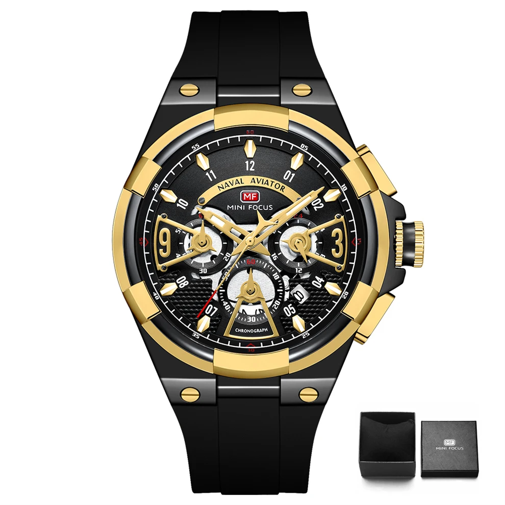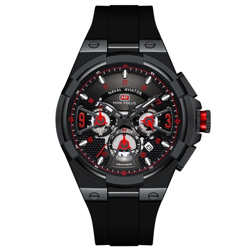Case Thickness:12.6mmBand Width:25mmBand Material Type:SiliconeCase Shape:RoundDial Window Material Type:glassBoxes & Cases Material:No packageModel Number:MF0402G01Dial Diameter:44.5mmFeature:STOP WATCH,Chronograph,Complete Calendar,Water Resistant,luminous handsWater Resistance Depth:3BarClasp Type:BuckleBand Length:23.5cmCase Material:ALLOYMovement:QuartzStyle:SPORTBrand Name:MINIFOCUSOrigin:Mainland ChinaCertification:CE,FCC,RoHSItem Type:Quartz Wristwatches