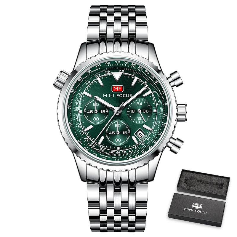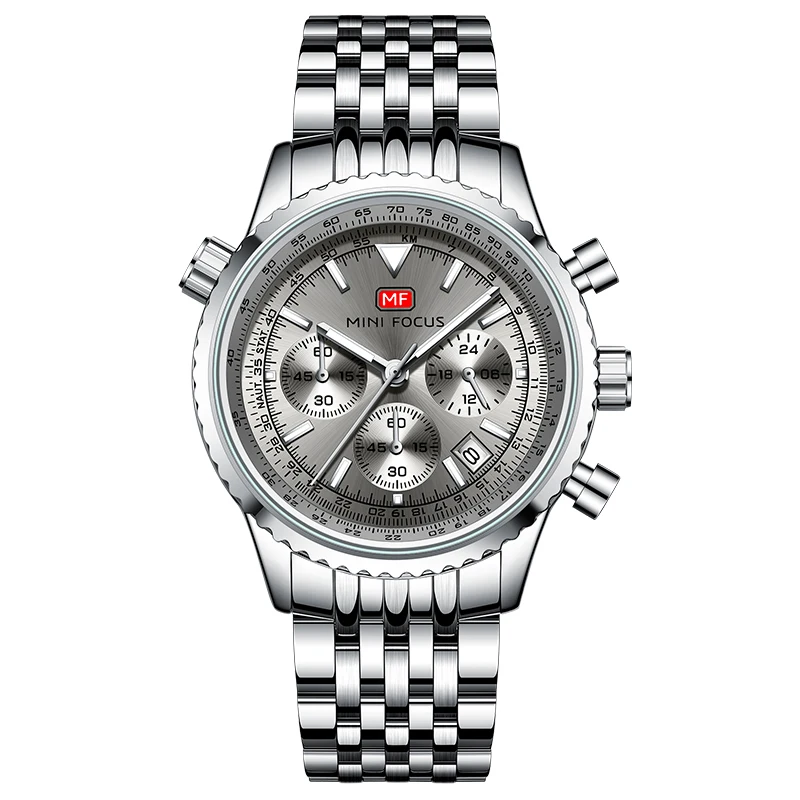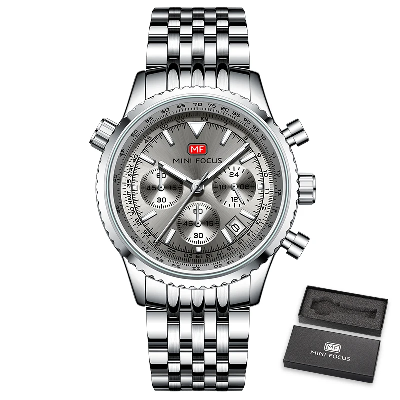 Case Thickness:14mmBand Width:22mmBand Material Type:STAINLESS STEELCase Shape:RoundDial Window Material Type:HardlexBoxes & Cases Material:No packageModel Number:MF0463GDial Diameter:43mmFeature:STOP WATCH,Chronograph,Complete Calendar,Multiple Time Zone,Water Resistant,luminous handsWater Resistance Depth:3BarClasp Type:Push Button Hidden ClaspBand Length:20cmCase Material:ALLOYMovement:QuartzStyle:SPORTBrand Name:MINIFOCUSOrigin:Mainland ChinaCertification:CE,FCC,RoHSItem Type:Quartz Wristwatches