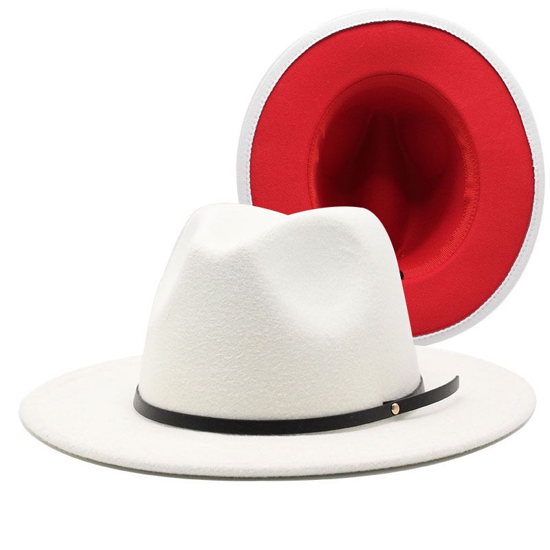 Modischer zweifarbiger Farbblockhut mit Wolloberteil, Jazzhut-Trend mit flacher Krempe für Männer und Frauen