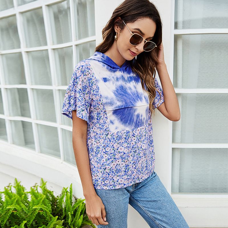 Modisches Damen-T-Shirt mit Tie-Dye-Druck, personalisierbar, Patchwork, farblich abgestimmt