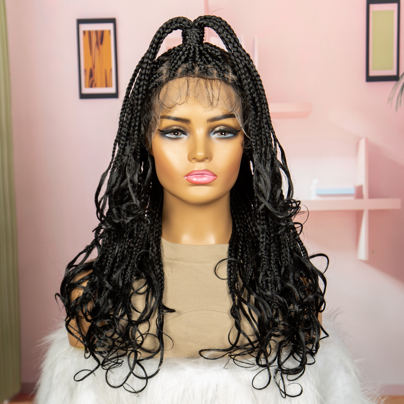 Modisches mittellanges geflochtenes Perückenkopf-Set, 9 x 6 vordere Spitze, geflochtener Haarschwanz, große Rolle, synthetische Spitzenperücke, 180 % Dichte, einfache modische Form