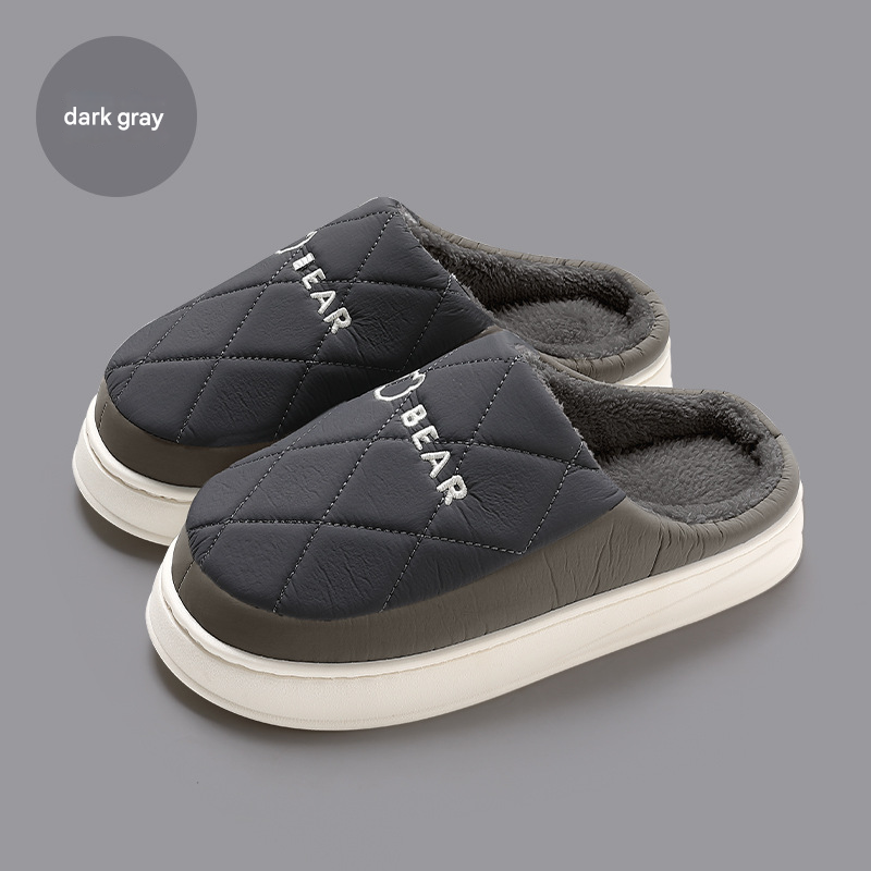 Down Fabric Cotton Slippers Waterproof Men's Home Large Size Indoor Non-Slip Plush Warm Autumn Winter Cotton Slippers for Women