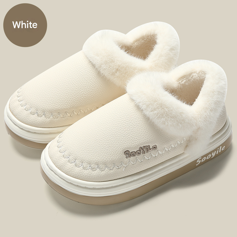 PU Waterproof Cotton Slippers for Women Winter Indoor Home Use Men's Plush Warm Non-Slip Winter Cotton Shoes for Men
