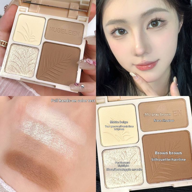MUGELEEN four color high gloss cosmetic one piece plate matte brightening shadow nose shadow Jinhua makeup cosmetic repair plate