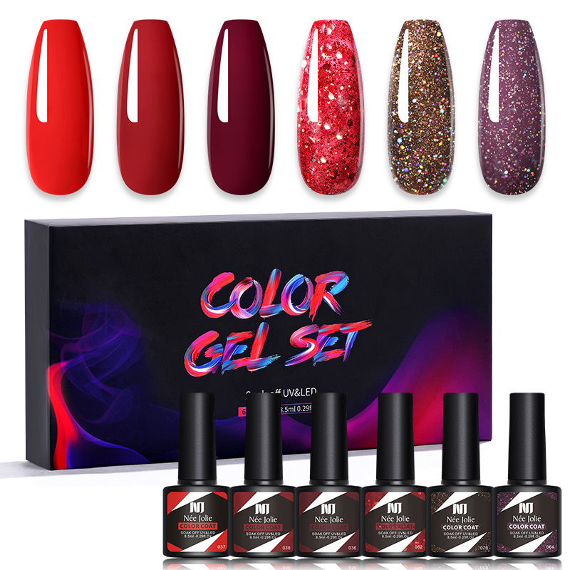 Nee Jolie 6-Farben-Nagellack-Set Gel UV Nail Art Kit mit Base Coat und Top Coat Cross Border Großhandel Neu eingetroffen