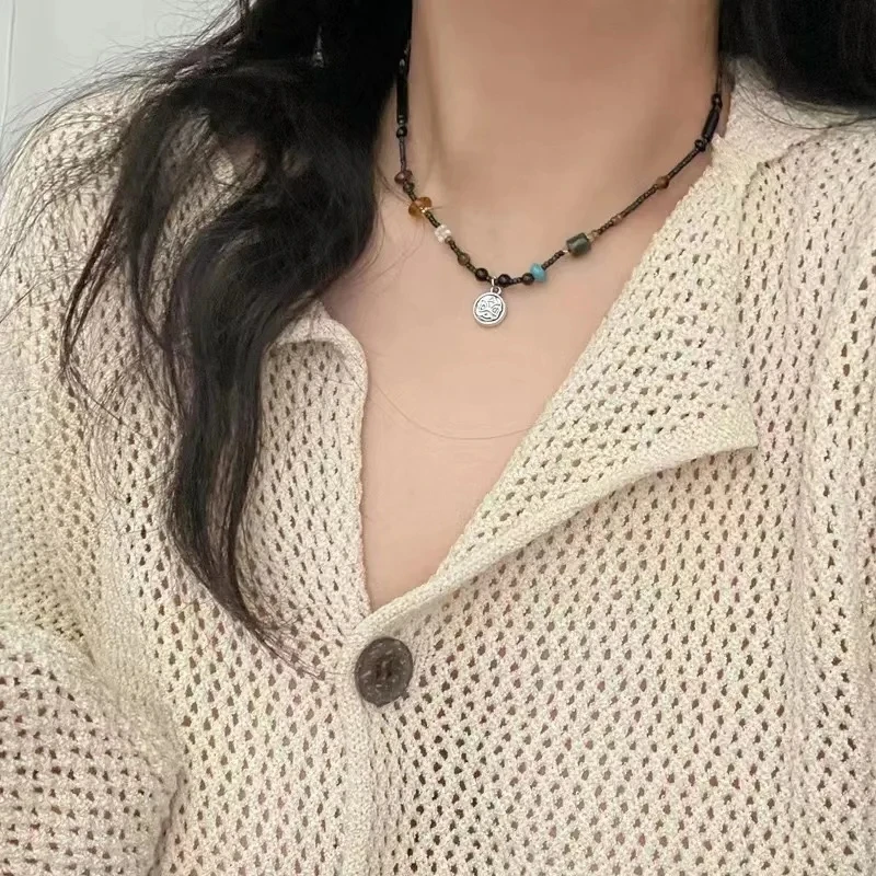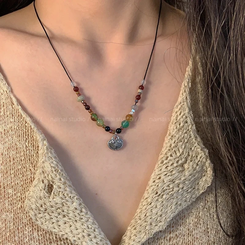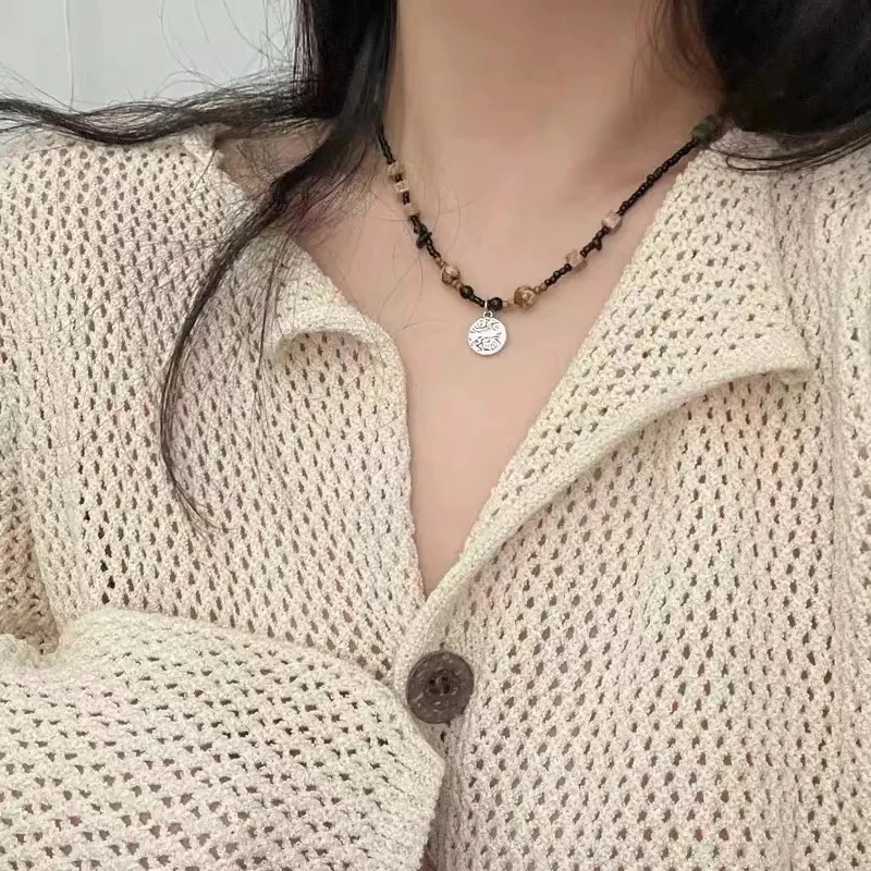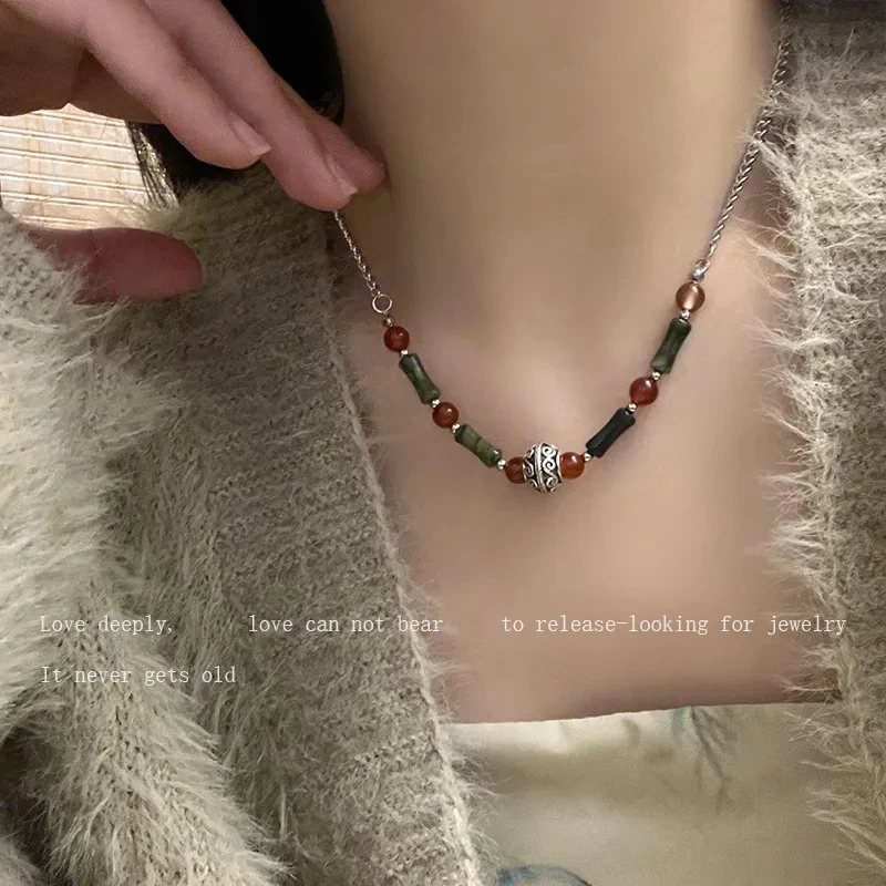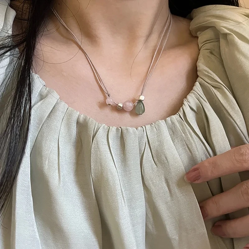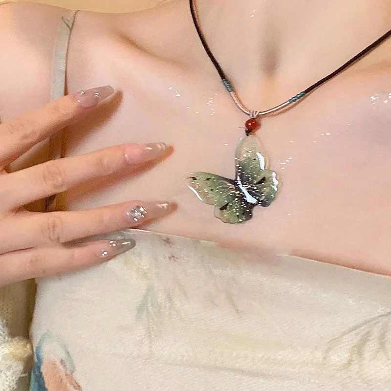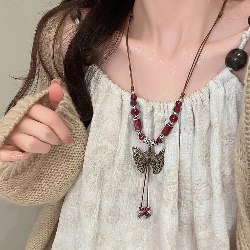 Halskette mit Schmetterlingen im nationalen Stil, Perlenkette, weibliches Temperament, dünnes Seil, Schlüsselbeinkette, verstellbarer Kettenschmuck
