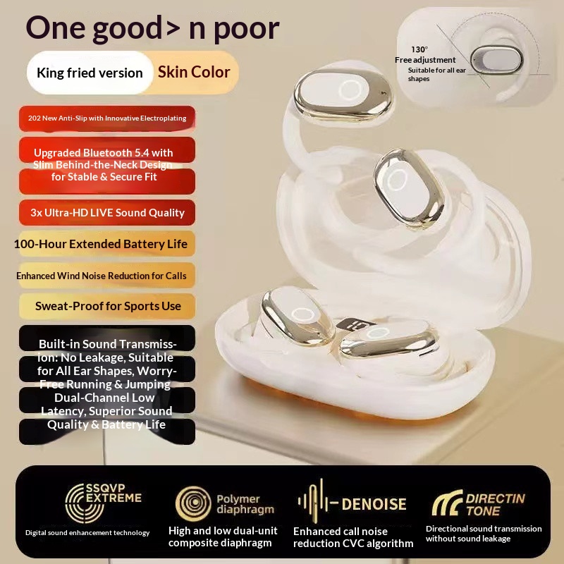 Brand:None,Transmission Range:other,Functionality:Battery Level Indicator, Voice Control, Music Support, Deep Bass Stereo Sound,Bluetooth Protocol:1.1,How to use:Ear-hook style,Is it single or double ear?:Bilateral Stereo Sound,Color:Black - Standard Edition Bluetooth 5.2 Chip + Ordinary Sound Effect, Cool Black - Top Edition Bluetooth 5.49 Chip + Natural Sound Effect + HD Call Noise Reduction + Ultra Long Battery Life, Skin-Friendly - Top Edition Bluetooth 5.49 Chip + Natural Sound Effect + HD Call Noise Reduction + Ultra Long Battery Life, Bright Moon White - Top Edition Bluetooth 5.49 Chip + Natural Sound Effect + HD Call Noise Reduction + Ultra Long Battery Life, Skin Color - Standard Edition Bluetooth 5.2 Chip + Ordinary Sound Effect, White - Standard Edition Bluetooth 5.2 Chip + Ordinary Sound Effect,Mold Type:Official Model,What type of chip is it?:Huawei,Battery life:0-4 hours,Year/Season of Release:other,Style:Sporty style,Waterproof performance:Waterproof for Daily Use,Material:Silicone