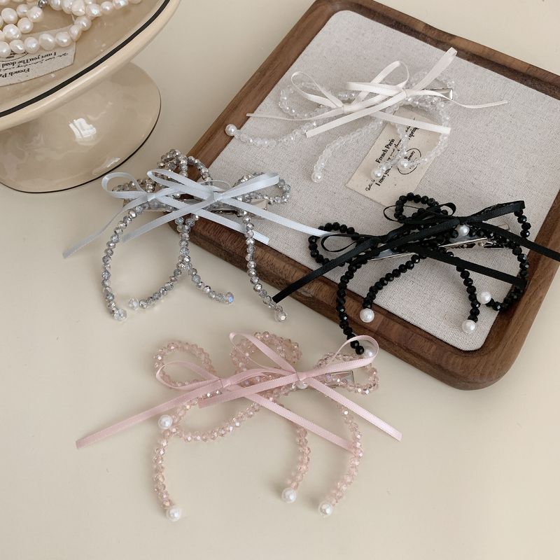 New 2024 Handmade Beaded Bow Gentle Hair Clip French Romantic Hairpin Bangs Clip Duckbill Clip for Women