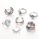 New Bohemian Turquoise Moon Feather Snake Set of 7 Rings