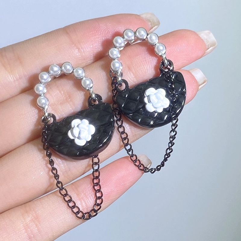 Neu Kamelie Tasche Weibliche Ins Kühlen Stil Kreative Design Schwarz Blume Ohrringe