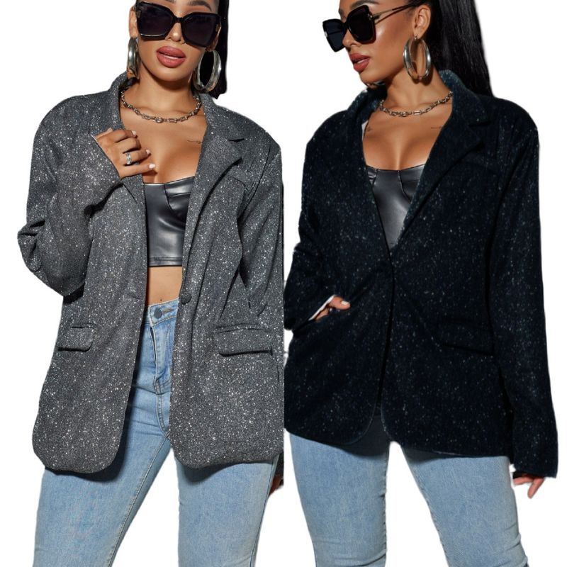 Neu Pendler Strickjacke Revers Lange ärmeln Shiny Große-größe Casual Blazer
