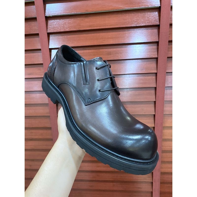 New Men's Work Shoes Round Toe 2024 Chunky Casual Leather Shoes Men's Internet Celebrity Business Formal Shoes