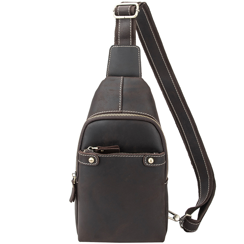 New Crazy Horse Leather Chest Bag for Men's Headband, Cowhide Backpack, Genuine Leather One Shoulder Crossbody Bag, Casual Sports Trendy Bag