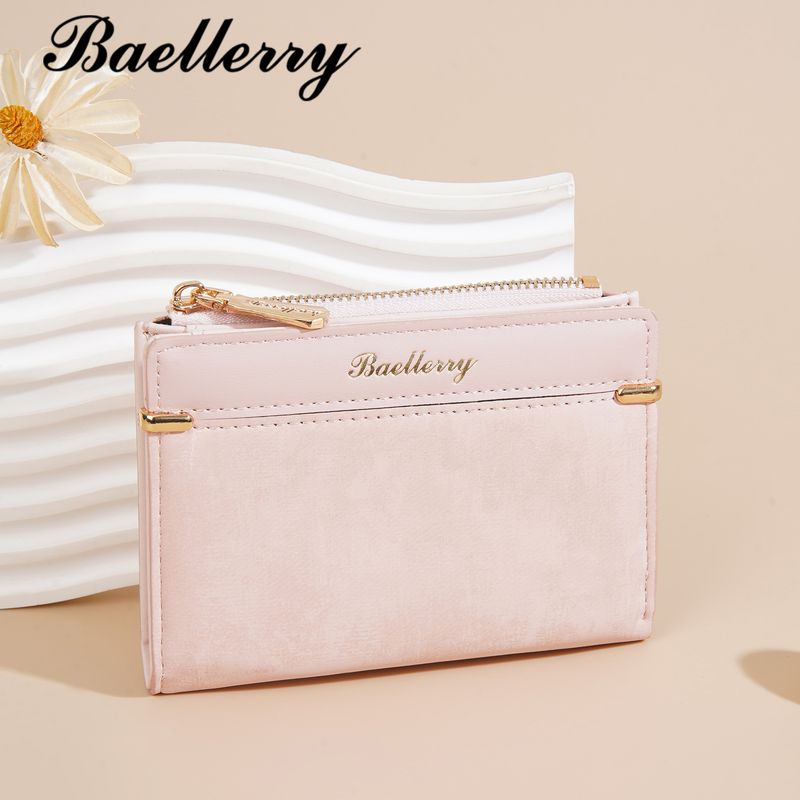 New Women's Short Wallet Baellerry Korean Style Solid Color Thin Simple Coin Purse Snap Button Zipper Small Wallet