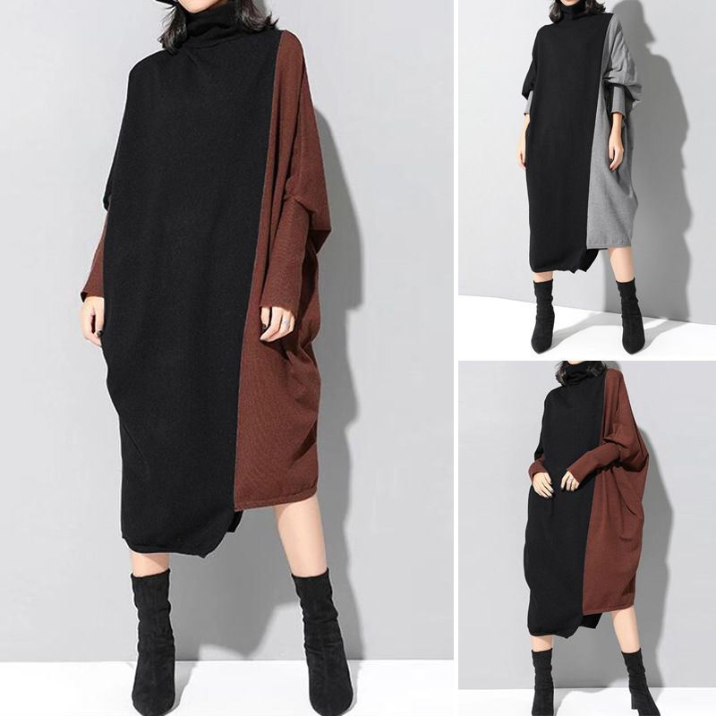 Neue Frühlingsmode Einfarbig Hoher Kragen Kragen Collage Fledermaus Langarm Temperament Pendler Damen Freizeitkleid