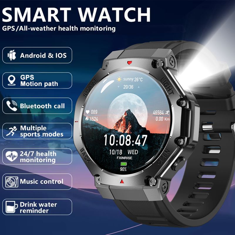 Neue GPS-Smartwatch 1,53 Zoll AMOLED-Display Sport Outdoor Sprachanruf Taschenlampe Kompass Uhr Männer Frauen Militärqualität Smartwatch